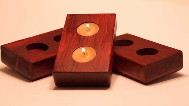 Sostenedor de vela de madera reciclada.