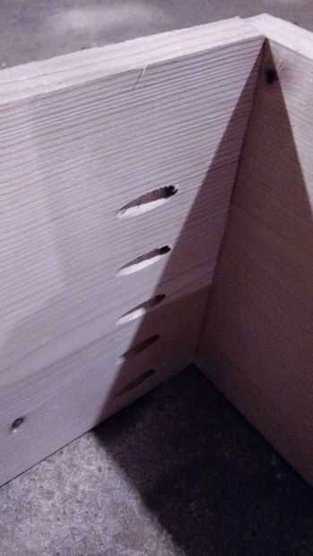 Para conectar la parte inferior a los dos lados puse los agujeros de bolsada en el tablero inferior y utiliza tornillos de bolsillo conectarse juntos junto con pegamento para madera en los bordes que tocan.