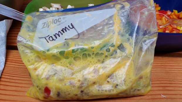 5. APLASTA su bolsa una y otra y otra vez hasta que todo se mezcla bien. Esto también sería un buen momento para enseñar a los niños un juego de Hacky sack en este punto, sino hacerlo bajo su propio riesgo. Es opcional.