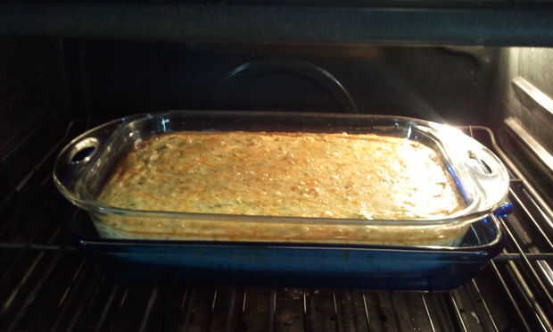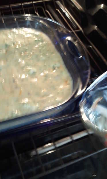 Si quieres super ventilado, use trozos pequeños trocitos de verduras y medio todos los ingredientes. Va a salir como un queso, pastel de brócoli, suena bruto pero delicioso sin embargo. Cazuela cuadrada dentro de un plato más grande funciona bien. ***