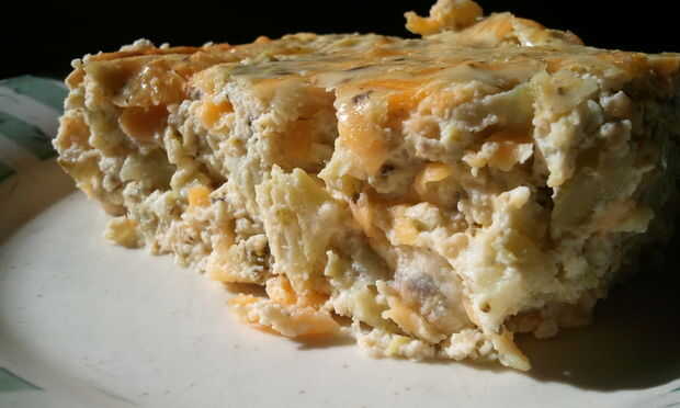 Mezcla setas sopa, huevos, queso, mayo (especias adicionales pueden añadirse aquí) - puede utilizar un mezclador para esta parte si lo desea