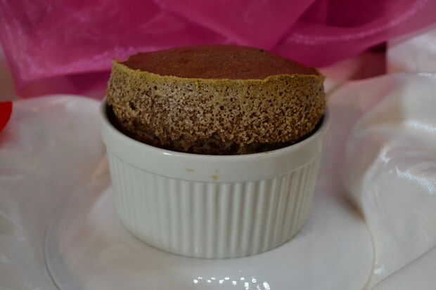 Decir "Usted es mi amor especial" con un soufflé de chocolate rico y luminoso con una inglesa de Ron Bacardi.