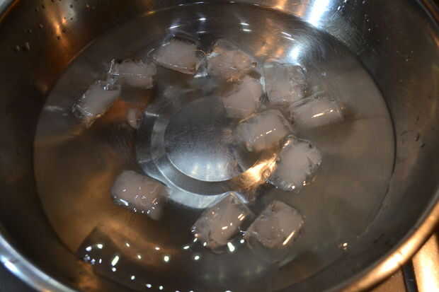 Preparar un baño de hielo en el recipiente grande y reservar. Necesitarás esto cuando se hace la salsa inglesa.