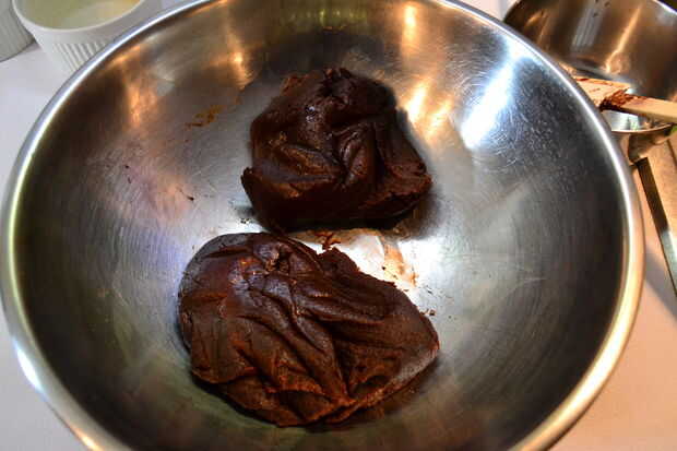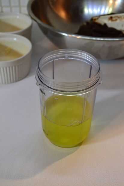 Tomar 1/2 del base previamente preparada y colocar en un recipiente de soufflé. Nota la base soufflé es suficiente para hacer soufflé grande unos 4. Guarde la otra mitad de la base para la cena al día siguiente de soufflé.