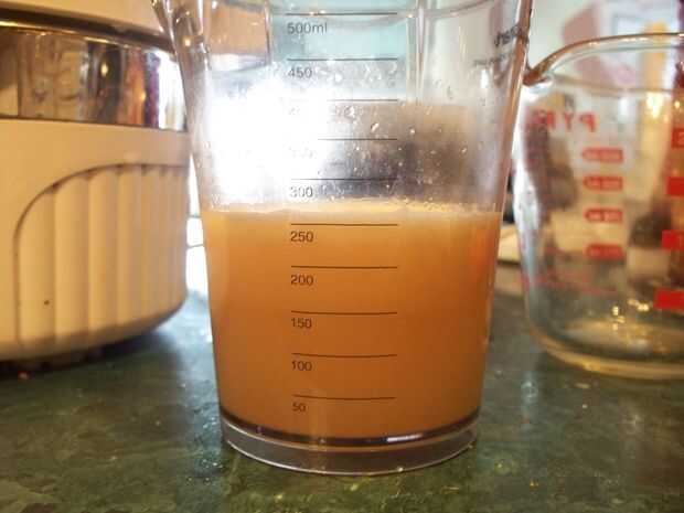 Se necesita 250 mL (aproximadamente un vaso) del jugo, tazas de medición líquidas más Pyrex tienen métricas en ellos.
