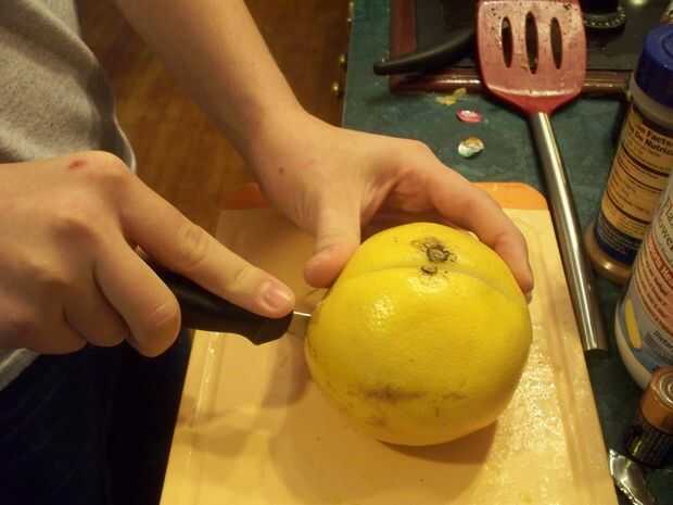 1.) corte la toronja por la mitad (una vez más, intente ser lo más preciso posible)