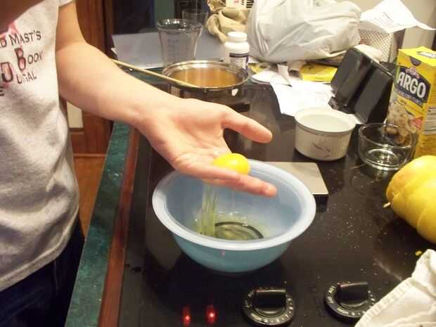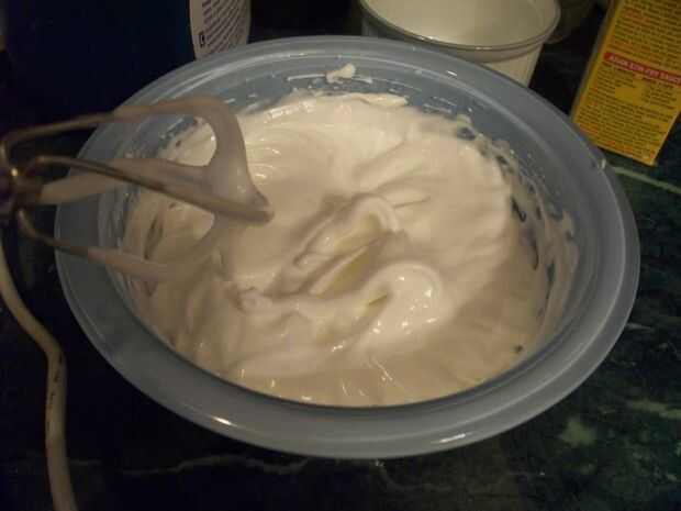 Una vez que los blancos, los bate con una batidora eléctrica hasta que se formen picos suaves.