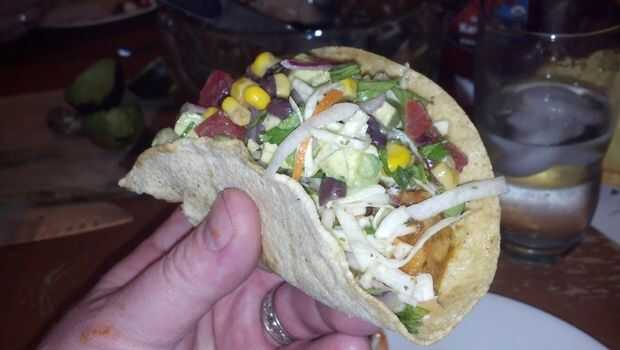 Trazado el diseño hasta que parecía correcto y utiliza un cuchillo para trinchar carne eléctrica para cortar la forma áspera de la sección de la hoja de la espuma rosa. Usé una lijadora orbital de mano pequeña para la hoja de la forma y contorno a lo. Entonces tomé un descanso para comer este delicioso taco.
