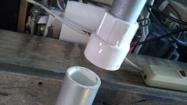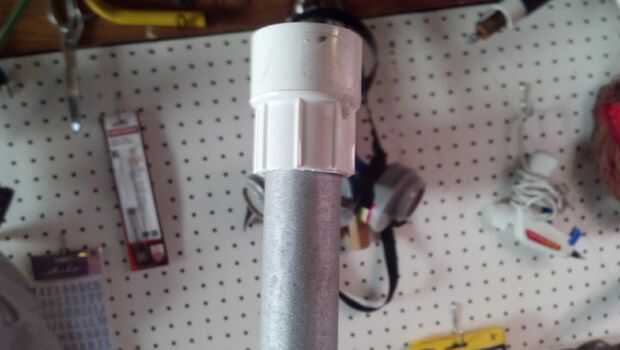Este pie 8 largo 3/4" PVC sección conectarse una sección 9" 1.5" del tubo de PVC que contiene el información personal como el ojo y la parte superior del destornillador. Utilicé un 3/4" al acoplamiento de PVC de 1.5" y utiliza 5 minutos para pegar dentro de la parte superior unos 5" pulgadas (descansar contra la varilla roscada inferior solía conectar más adelante la hoja para el personal, en el paso 4).