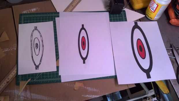 El ojo fue hecho en Adobe illustrator y tomó unos 10 minutos para hacer. Es 5 óvalos capas encima de la otra con dos pequeños rectángulos en la parte superior e inferior. Imprimí varias copias y sólo lo escala hasta que fue un buen partido a la sección de personal. Recorto con una navaja y mod podged uno a cada lado de la plantilla. Salió mejor de lo que esperaba para.