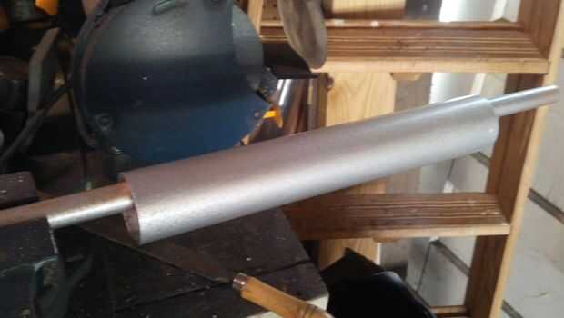 La sección de 8 pies de 3/4" PVC era aerosol pintado con pintura krylon fusion metálico (2 manos) y luego una capa de Mod Podge mate acrílico aerosol sobre eso.