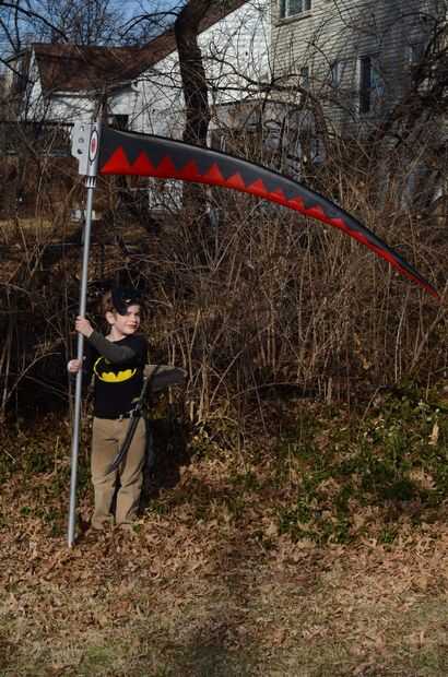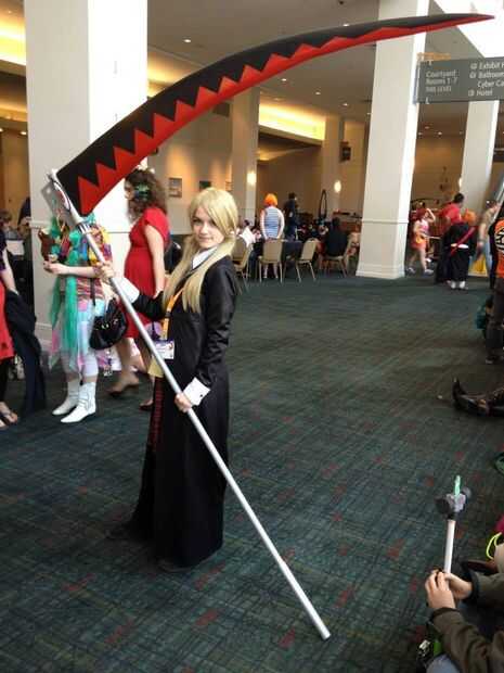 Y aquí está la guadaña completada con el feliz nuevo propietario. Mi niño de 7 años de edad recibirá varias noches de canguro que permite noches fecha con mi esposa, y una joven obtiene un muy buen apoyo para sus contras! Ella me envió estas fotos de Nakacon después de su debut.