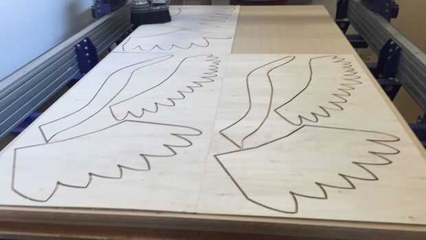 Las alas son formas, cortadas con un router CNC (que aprendí a hacer en TechShop.) Se montaron en el trono después de que fueron pintadas en oro.
