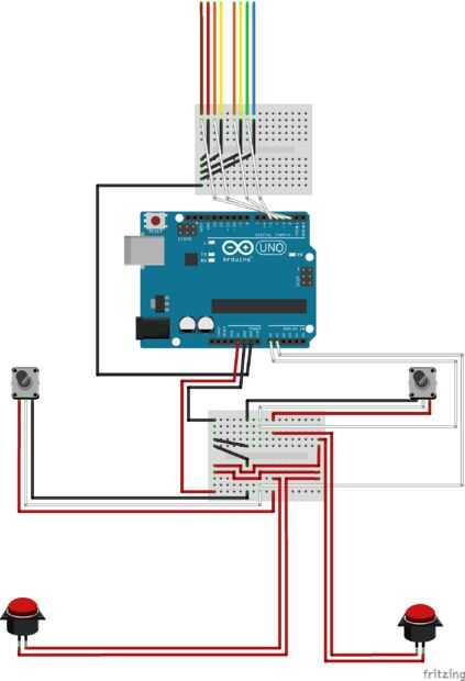 Siga el esquema de Fritzing conectar los circuitos, montajes de la vida real se puede encontrar en las otras fotos.