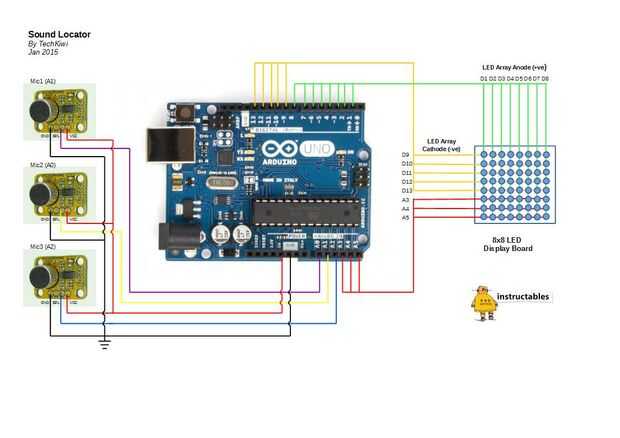 Conecte las conexiones de VCC y GND en cada Mic juntos para que luego puede conectarse a la placa de blindaje una vez. Deberás acabar con cinco cables para conectar a la tarjeta de escudo-