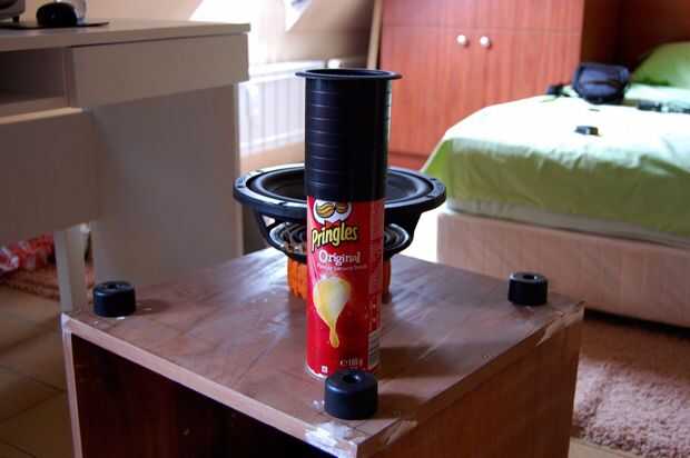 El bass refleks tiene un diámetro de 7,8 milímetros y lo necesitaba para maкe más usé una caja de cilindro de Pringles. No te rías se funciona ;)