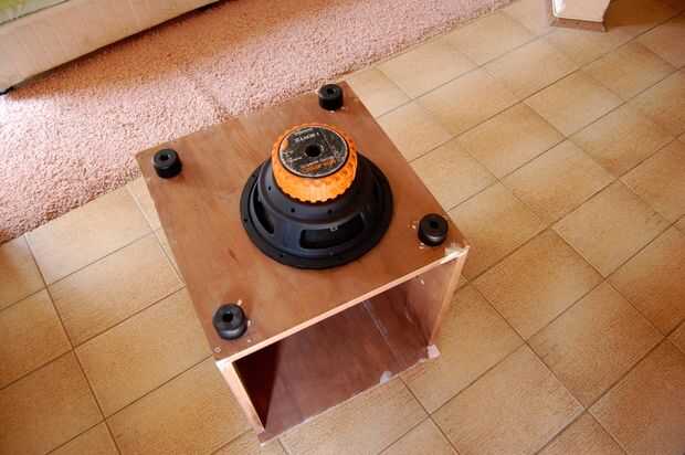 El altavoz se colocará apuntando hacia el piso, en la parte inferior del gabinete, junto con el reflector. El amplificador se montará en la parte trasera por lo que se ve todo limpio y la atracción principal en la parte delantera es el control de volumen, como muestra en el plano.
