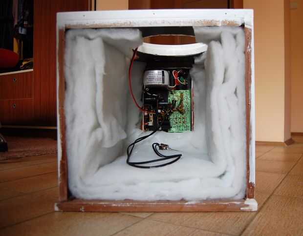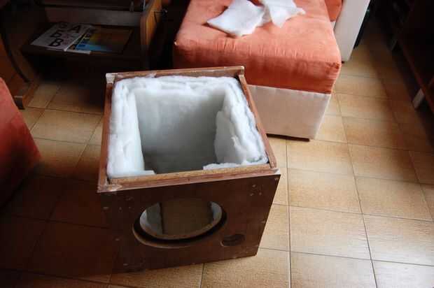 Pegue los lados interiores de la caja con lana. Su efecto es hacer la caja más grande para mejor y más bajo y sonido.