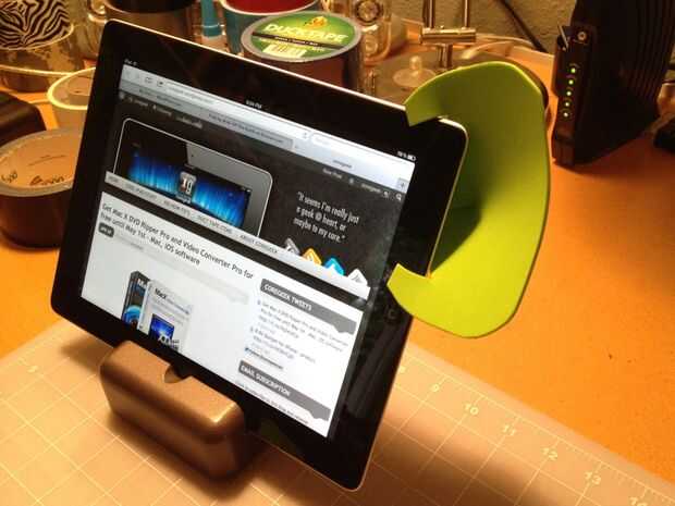 Deslice sobre el borde de la esquina del iPad centrado debajo del altavoz. Disfrutar de su mayor volumen!