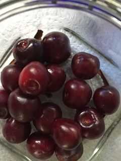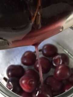 Mientras tanto mientras que el sirup vino es enfriar, limpiar y secar las cerezas.