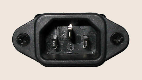 Receptáculo de C14 - este es un enchufe como encontrará en los equipos. Conseguirlos de eBay, también. Deben ser menos de $1 cada uno. http://www.eBay.com/SCH/i.html?_From=R40&_trksid=M570.l2736&_nkw=C14+RECEPTACLE
