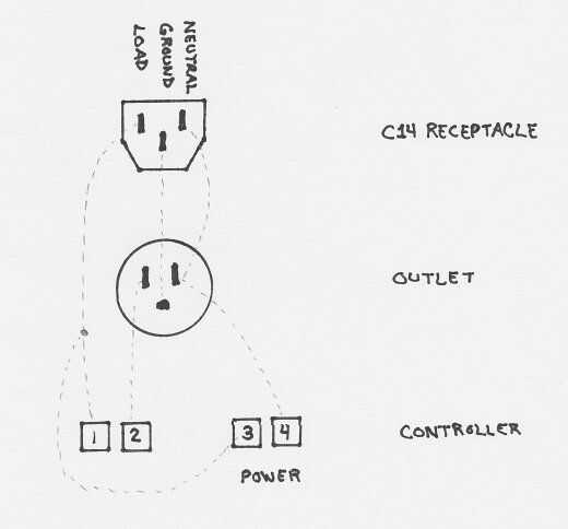 Neutro - Conecte el cable neutro en el tomacorriente de C14 al tornillo neutral en la salida. Con el segundo tornillo neutral en la salida, conecte al pin neutro (4) en el controlador.
