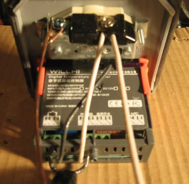 Sonda de temperatura - perfore un pequeño agujero en el lado de la caja. Pasar los cables de la sonda de temperatura a través del agujero y conectar a los pines 7 y 8 del regulador.