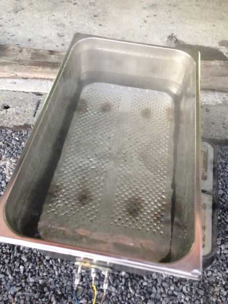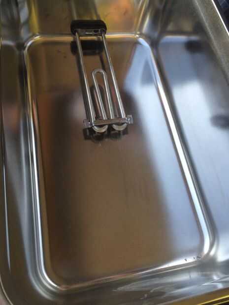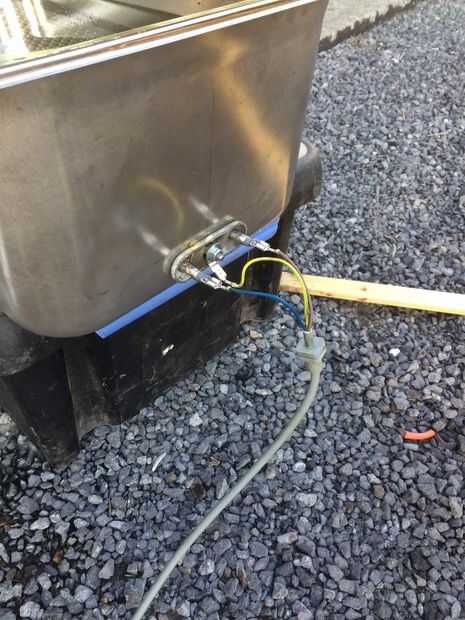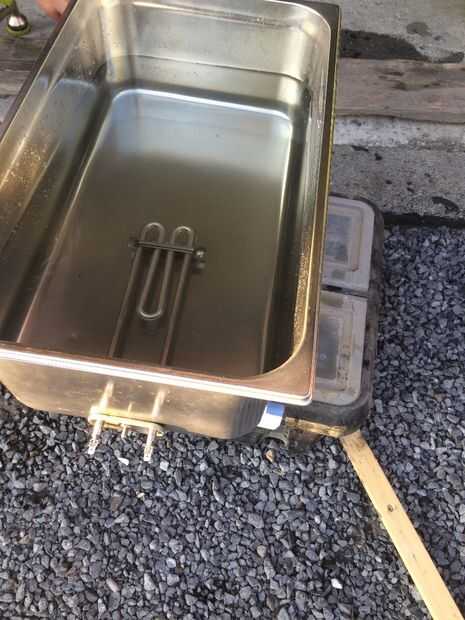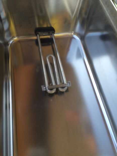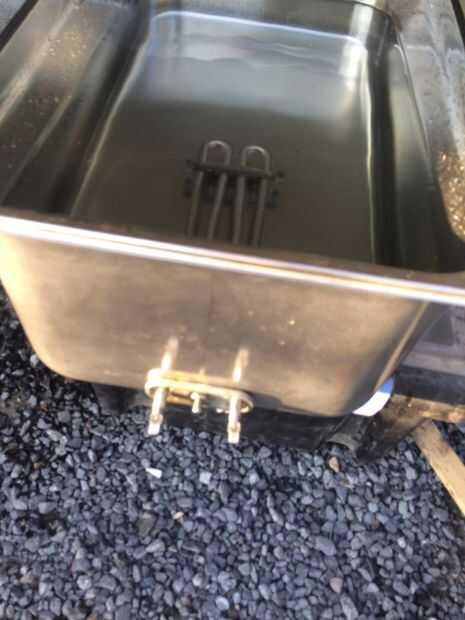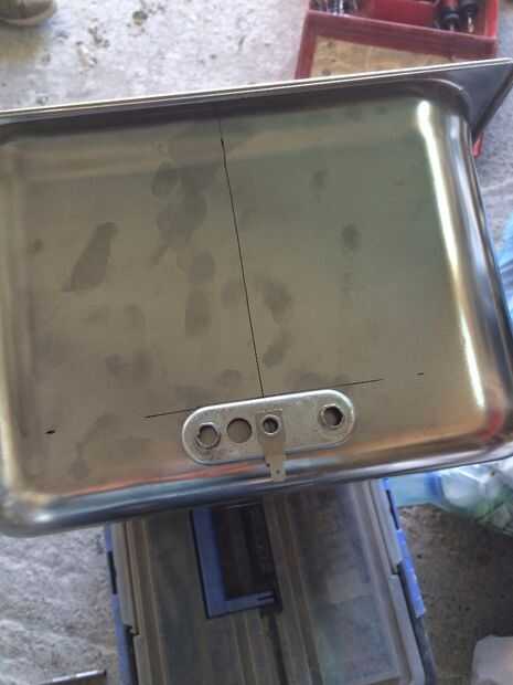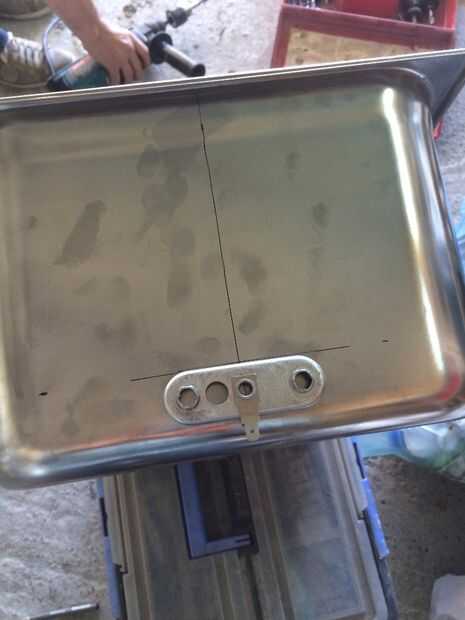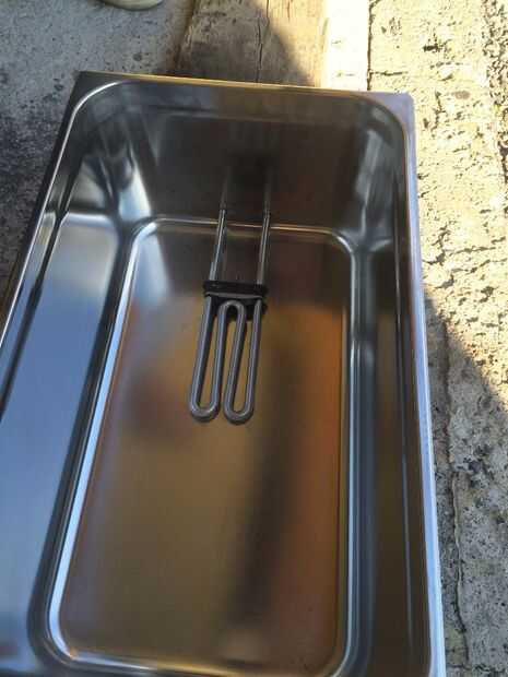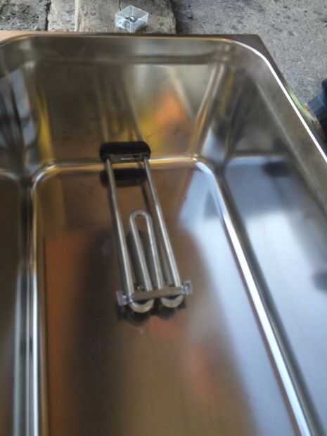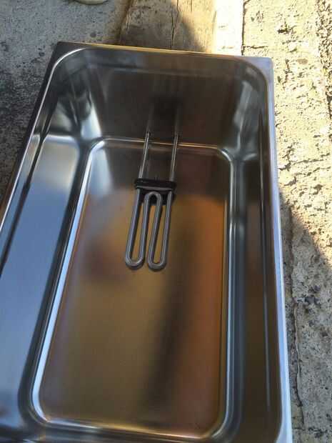 Dibujar el soporte en la bandeja gastronorm de acero inoxidable y dibujar su ubicación. Utilice el taladro para perforar los agujeros a través del apoyo. Cambiar su forma por pulir para que sea totalmente plana. Acople y la resistencia a través de la bandeja de acero inoxidable. Verificar su estanqueidad mediante la adición de agua. Revise su funcionamiento conectar el enchufe de la resistencia de lavado. Esta solicitud de 2000w. Calor a ver si todo está en orden.