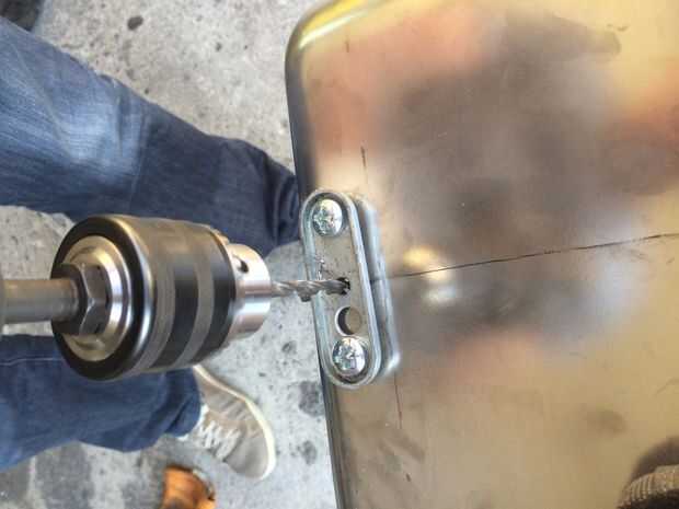 Un l'aide de la foreuse percer les trous à soporte travers.