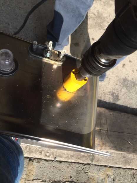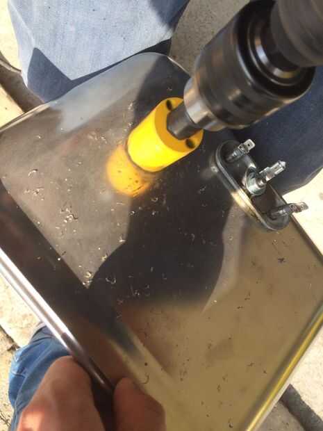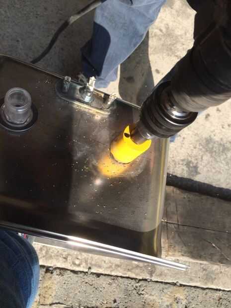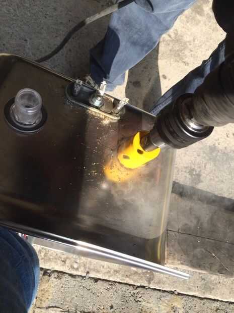 Con baño réaliser le trous pour mettre la pompe et ainsi avoir une circulación agua, utilisez une cloche à métaux ainsi du lubrifiant afin de Prepare proprement.