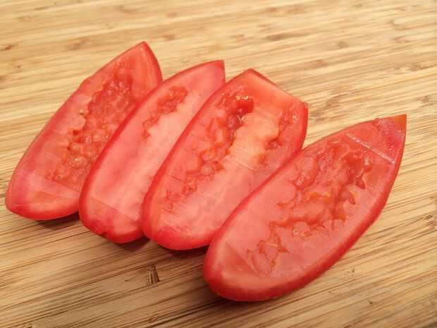 Comience con un tomate grande de Roma.