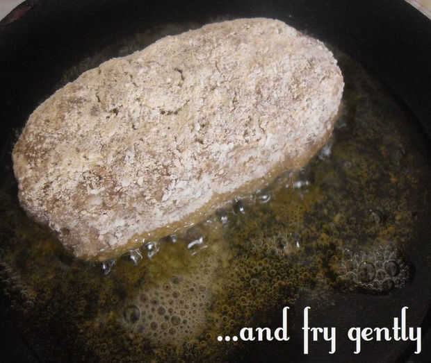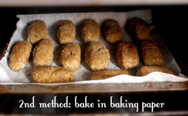 Entonces, el segundo paso es cocinar los soutzoukia antes de que cocinarlas en la salsa de tomate. Esto evitará que se desmoronan cuando se cocinarlas en la salsa. Hay dos maneras de hacerlo: la primeray tradicional es el soutzoukia de harina (yo normalmente uso harina blanca combinada con harina de garbanzo) y someras freír ligeramente en aceite de oliva hasta doradas. La segunda manera es cocer en el horno a 180 ° C en la hornada de papel hasta marrón de oro.