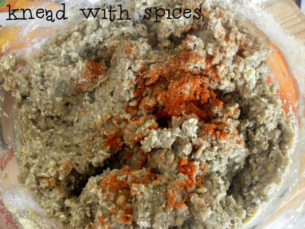 Amasar las planta de lentejas con especias que prefiere, pero generalmente el pimentón dulce, comino, canela, orégano, ajo se utilizan mejor. A veces, me gustaría añadir algunas semillas, así como lino semillas y semillas de sésamo, pero es totalmente opcional, es un toque personal!