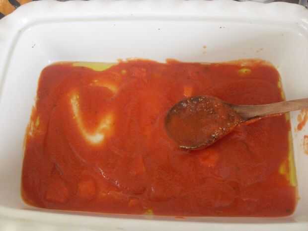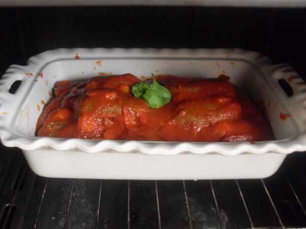 En una bandeja para hornear Vierta una pequeña cantidad de salsa de tomate y agregar el soutzoukia teniendo cuidado de colocarlos en una sola capa. Agregar la salsa restante para cubrirlas completamente y hornear a 180-200° C hasta que la salsa se espese.
