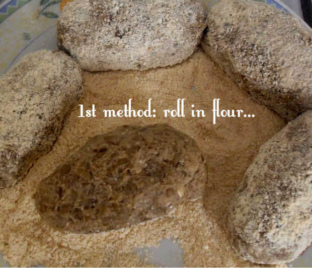 Si la mezcla resultará un poco pegajosa, añadir alguna harina,pan rallado o harina de avena. Mi consejo para usar este último porque la avena tiene la increíble capacidad de absorber fácilmente el agua y la mezcla será más firme. Poner la mezcla en la nevera por 30 minutos para dejar que los ingredientes combinan bien.