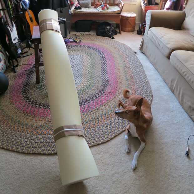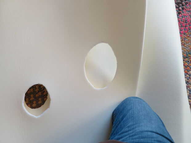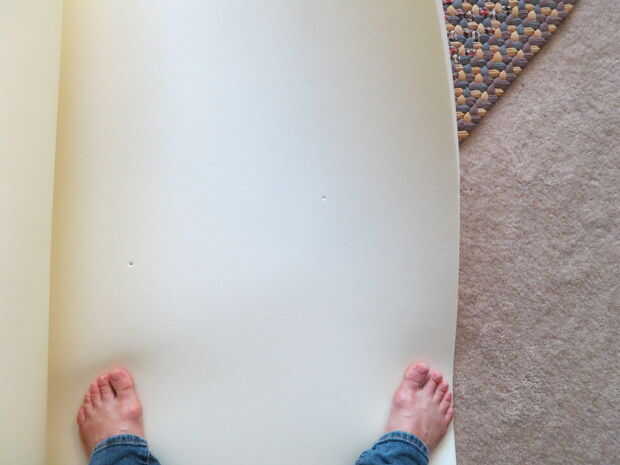 La espuma llega en un gran rollo ligero. Desenrollar un poco y mantenerla hasta una posición justo alrededor de las rodillas y usar una pluma para hacer marcas de perforación donde se golpean el hombro y la nariz.