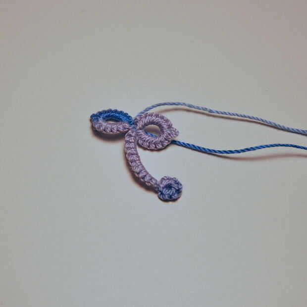 (Además, no invertir su trabajo entre lazos, seguir mirando de frente. Hice picots pequeños porque son todos para unirse y no me gusta que sean sensible.)