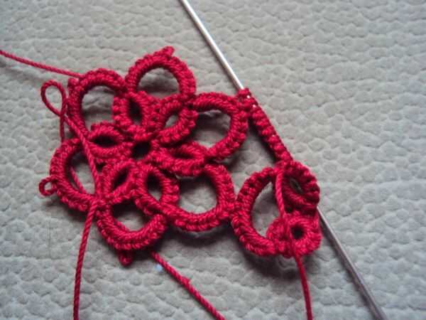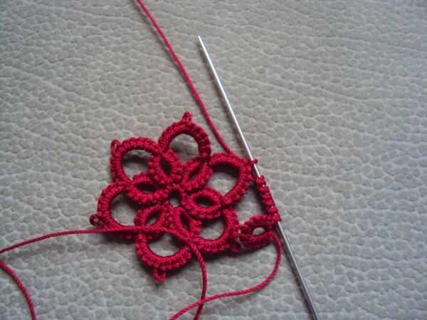 Una vez que terminado la primera flor, hacer otro, pero recuerda a primer picot de uno cadena y luego el próximo picot de la cadena. Ver la imagen.