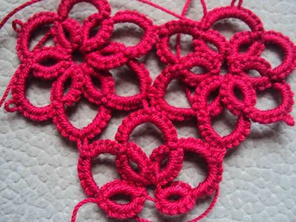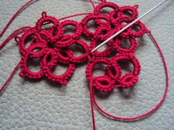 Repetición unirse a flores. No olvide unirse a picot que ya comparte la cadena (pic). Usted se unirá a 21 flores en frente parte en forma de 6 x 6 x 6 triángulo.
