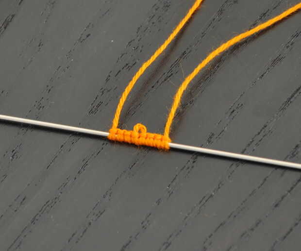 Cuatro puntos dobles, una puntilla y cuatro puntos más dobles, cierran y nudo. Tenía una cola de unas veinte pulgadas y es una longitud bastante decente.