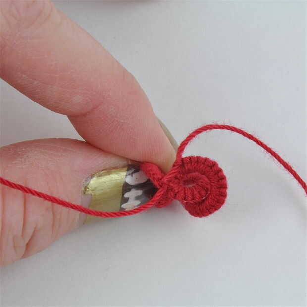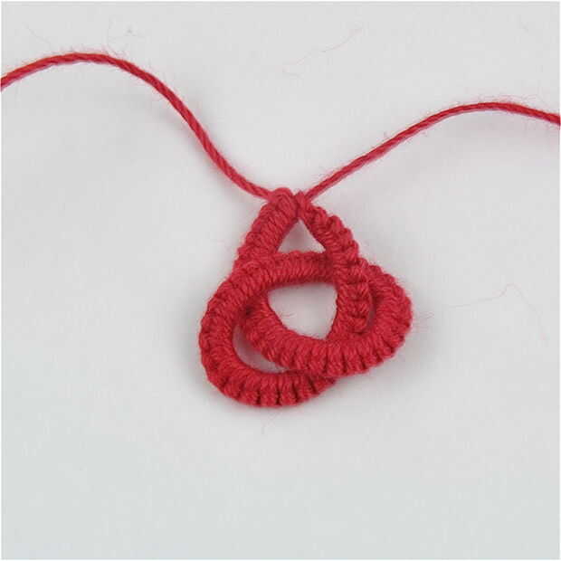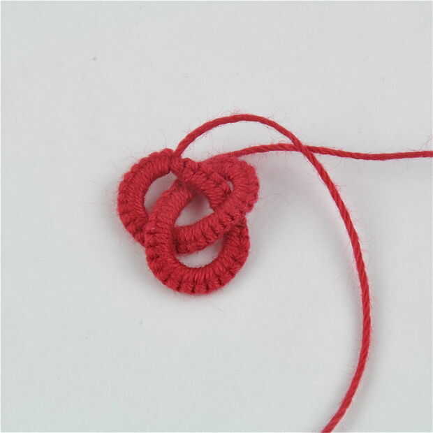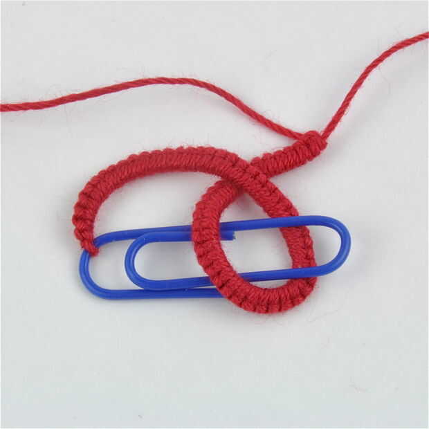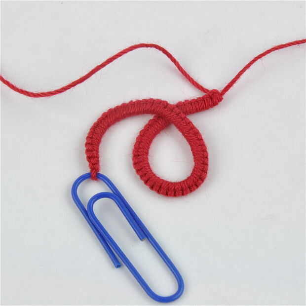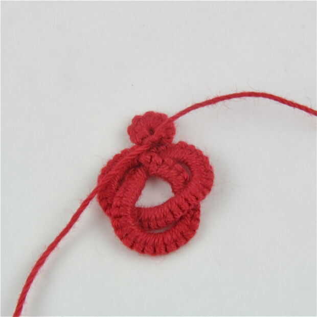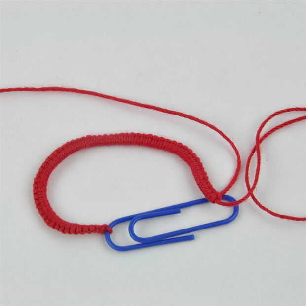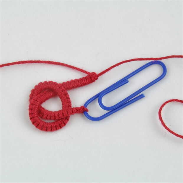 • 60 TAT.  Poner el clip de papel en el final y sacar los nudos sin dejar que al final cerrar.  Tejer la hebra (cuadros 2-6).  Cerrar.