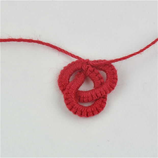• Aquí enderezó el nudo de la Trinidad para que el nudo no está en el centro de una punta del nudo de la Trinidad y está en el centro de un lado que se superpone con otra cara.  (Imagen 7)
