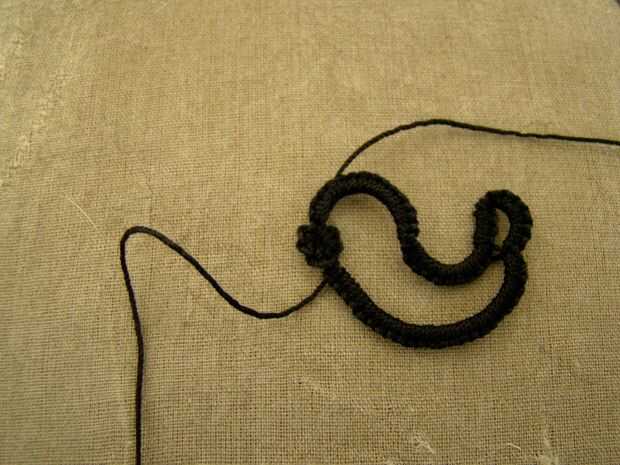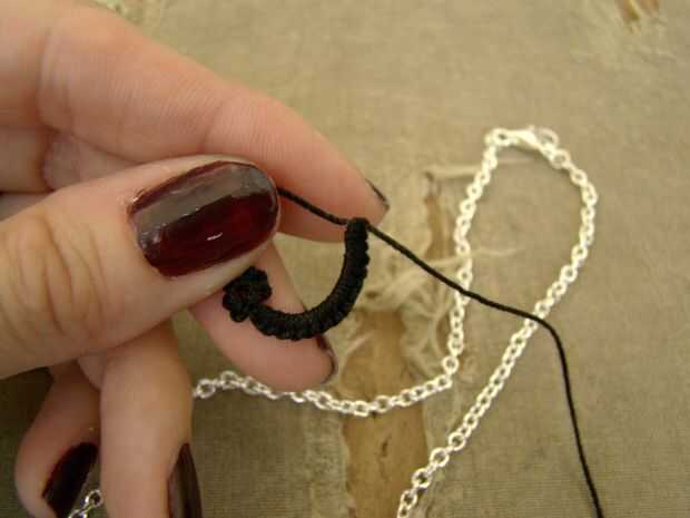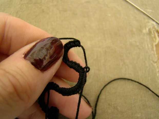 CH 25ds Únete para la puntilla para el empate en cl anillo un nudo doble y esconder los extremos del hilo.