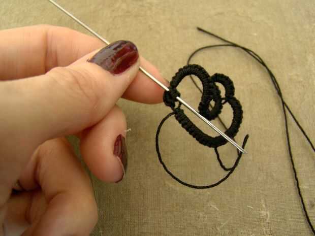 CH 7 unir el hilo a la puntilla que acaba de hacer pasar la aguja por el bucle y haga un nudo sin inversión de trabajo