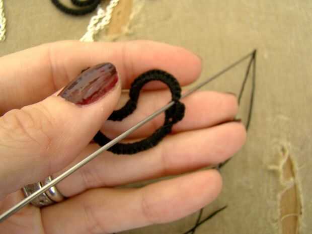 Unir el nuevo hilo a la parte superior del anillo donde empezamos a hacer la segunda parte. Repita que la misma puntada cuenta para el otro lado.