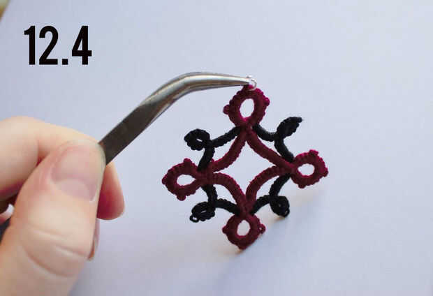 Tomar un anillo de salto y pasar por arriba picot del anillo de Borgoña. Agregue hippy y cierre de anillo del salto.