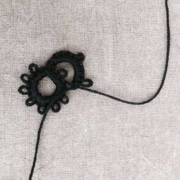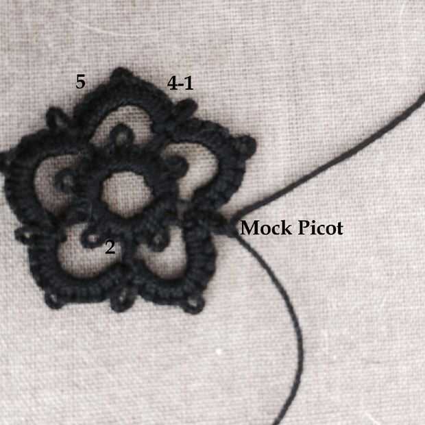 * Un picot falso es simplemente una puntilla hecha por doble atar los extremos del hilo para hacer un loop del mismo tamaño que los otros picots.