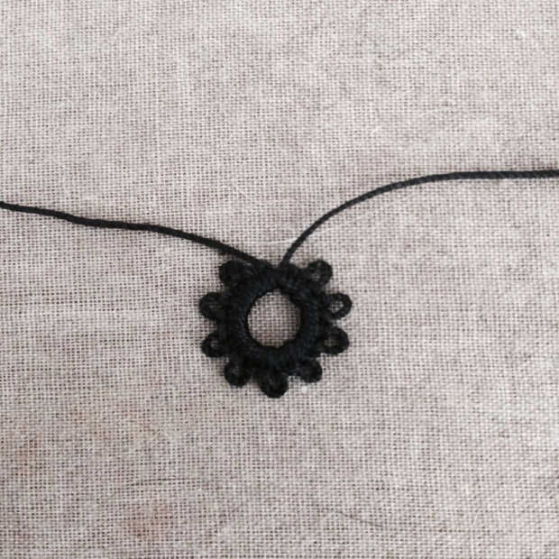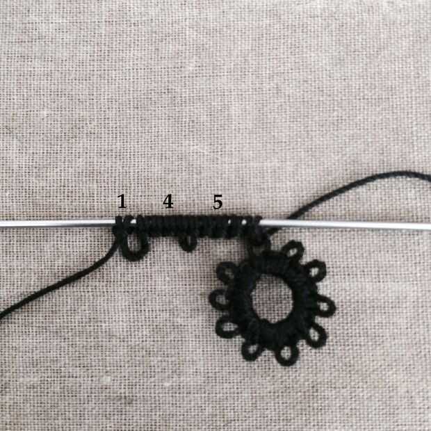 Picot(p) 2ds 2ds p 1 1 2ds p 2ds p 1 1 2ds p 1 2ds p 2ds p 1 1 2ds p 2ds p 1 1 2ds p cerrar y hacer un picot falso *. Esto te dejará con un anillo de 10 picots separados por 2ds