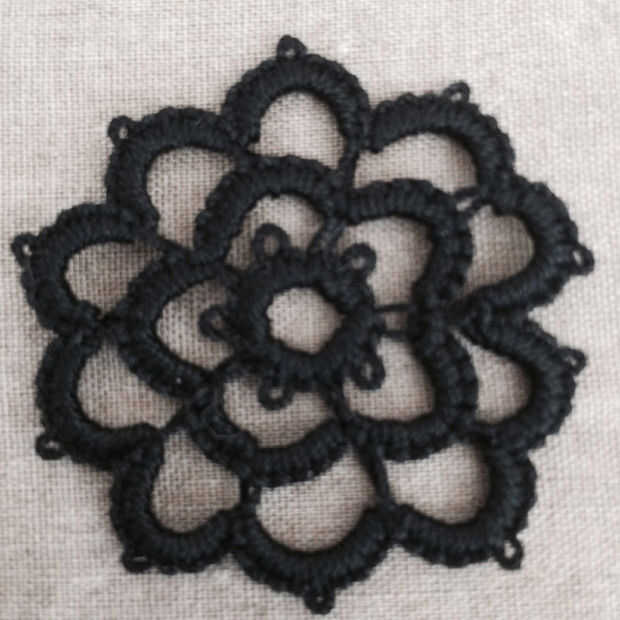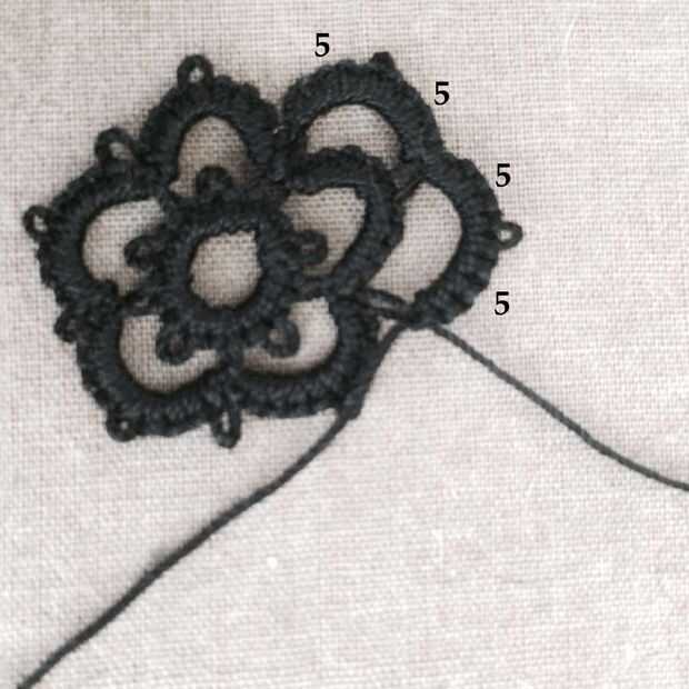 Continúe alrededor y unirse a la cadena final para el picot falso principio