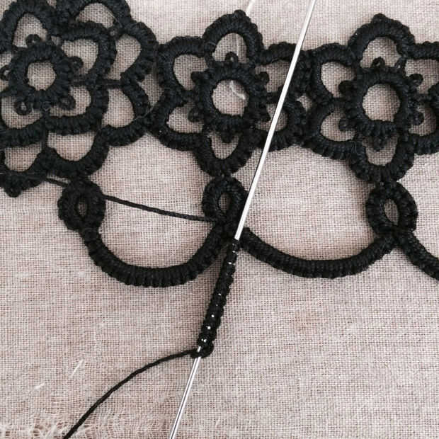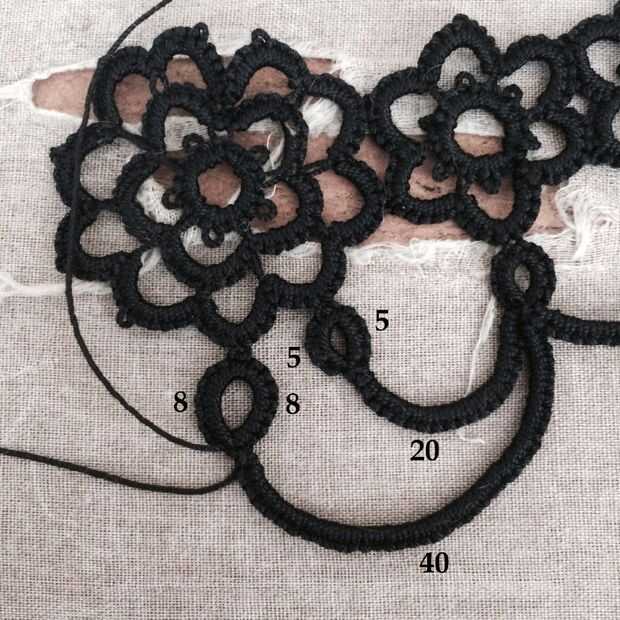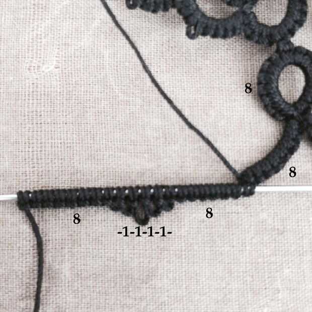 Únete a hilo donde se muestra en la base del anillo unido al primer motivo pequeño al lado del adorno de centro.